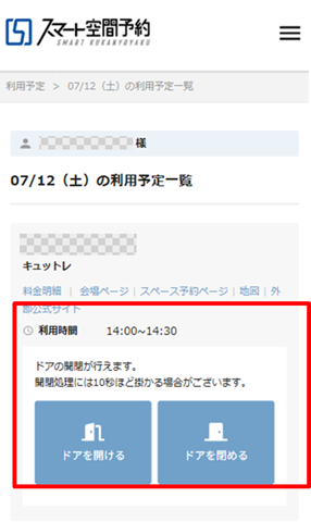 退室する際は、ドアの外に出たら、スマホで「ドアを閉める」ボタンを押します。5~10秒程度でドアの鍵がかかります。